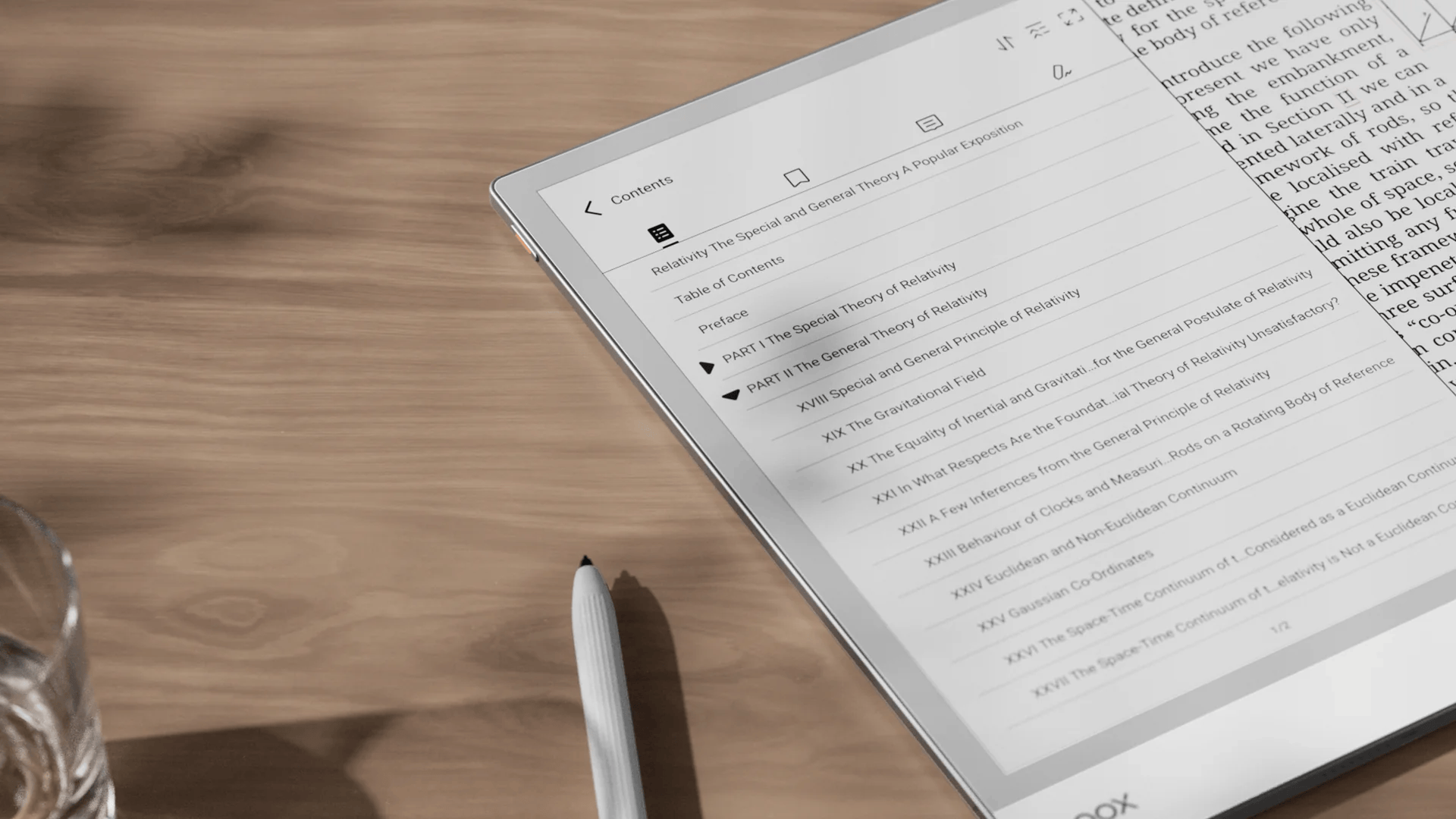 Egy BOOX tableten a szöveg előnézete gyors és intuitív a beépített NeoReader alkalmazással. Például gyorsan átvizsgálhatod a tartalomjegyzéket, hogy egy világos áttekintést kapj a szerkezetről, az előnézet funkció segítségével pedig megnézheted az oldalakat 4, 9 vagy 16 rácsos elrendezésben a gyors navigációhoz.