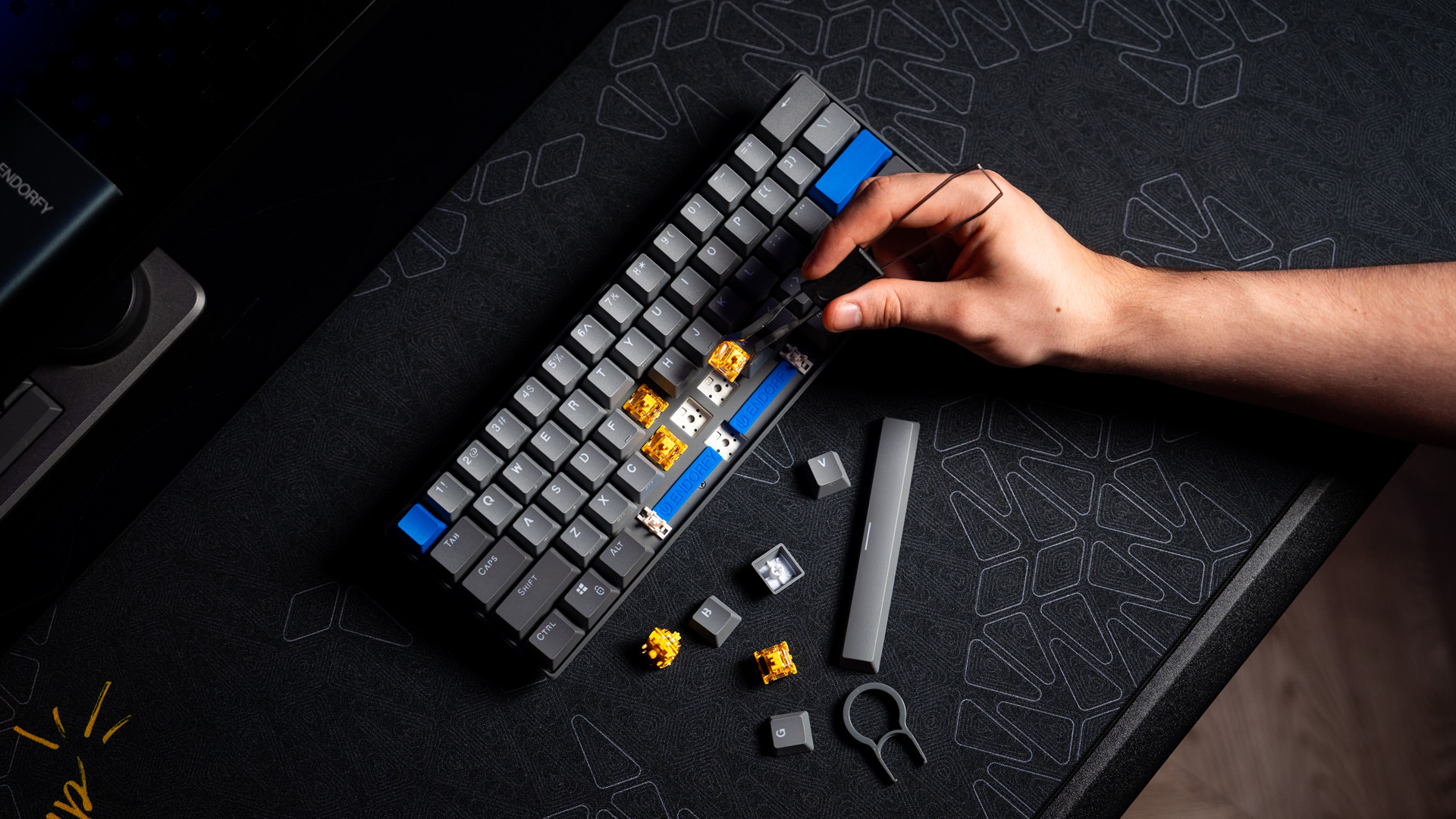 Minden billentyűzet hasznos tartozékokkal érkezik a dobozban: szerszámok a billentyűsapkák és switchek eltávolításához, valamint két tartalék switch. A vezeték nélküli modellek opcionális, szürke Esc és Enter billentyűsapkákkal érkeznek a minimalista megjelenésért. A nagyobb kényelemért egy mágneses csuklótámasz – memóriahabból készült és puha PU bőrrel fedték le – is megvásárolható mellé.